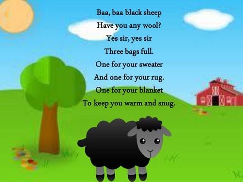 Baa, baa, black sheep, have you any wool yes sir, yes sir, three bags full one for the master.